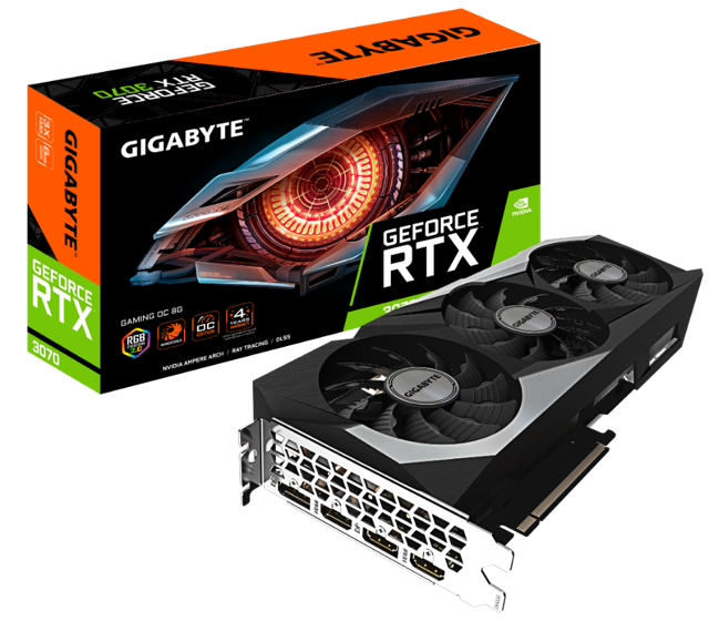 Тайбэй, Тайвань, 29 октября 2020 г. – компания GIGABYTE TECHNOLOGY Co. Ltd., ведущий производитель материнских плат, графических 3D-ускорителей и других ключевых компонентов для настольных ПК, анонсирует новые ускорители трехмерной графики на базе графических процессоров NVIDIA® GeForce RTX™ 3070-серии (микроархитектура NVIDIA® Ampere™). На момент анонса модельный ряд продуктов GIGABYTE представлен 5 моделями – AORUS GeForce RTX™ 3070 MASTER 8G, GeForce RTX™ 3070 GAMING OC 8G, GeForce RTX™ 3070 VISION OC 8G, GeForce RTX™ 3070 EAGLE OC 8G и GeForce RTX™ 3070 EAGLE 8G, которые адресованы различным категориям пользователей и отвечают требованиям самых взыскательных клиентов. Модель AORUS MASTER изначально разрабатывалась для энтузиастов, которым необходима максимальная производительность видеоподсистемы и оригинальная RGB-подсветка изделия. Графическая плата GAMING OC – продукт массового спроса, оптимальный выбор для большинства поклонников компьютерных игр. Ускоритель трехмерной графики VISION OC адресован в первую очередь созидателям цифрового медиаконтента, для которых игровые характеристики продукта второстепенны, однако, имиджевая составляющая имеет значение. Целевая аудитория графических плат семейства EAGLE – пользователи, основные запросы которых в отношении видеоподсистемы связаны с ее производительностью в 3D-приложениях и продолжительным ресурсом работы изделия.
