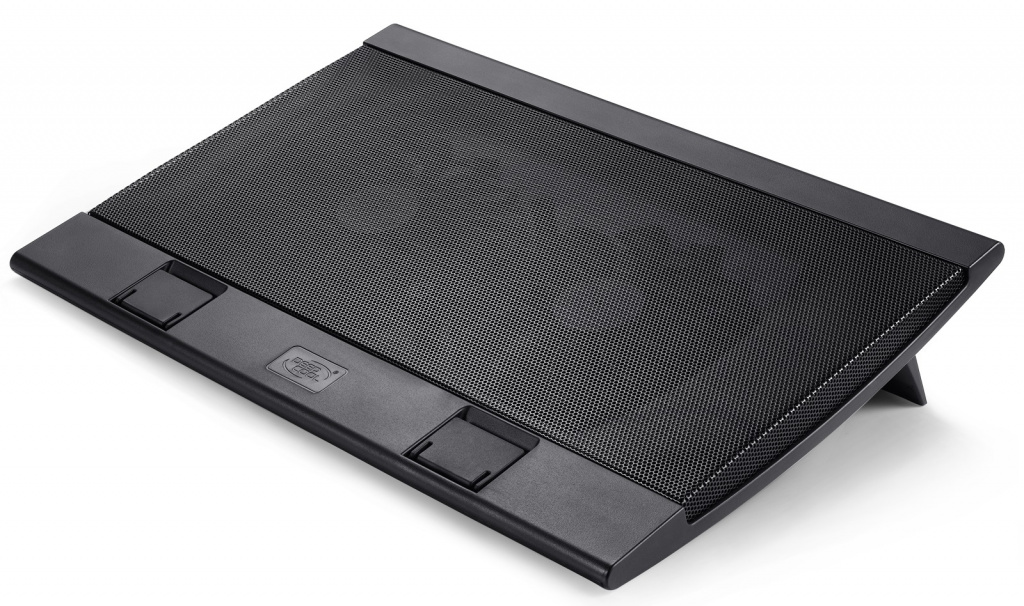 Deepcool Wind Pal FS имеет не вполне привычную конструкцию. Поверхность самой платформы - плоская, а ее основание - изогнутое. Оно делает подставку похожей на корабль, а металлическую сетку в верхней ее части – на палубу. Такая конструкция устройства сделана для улучшения циркуляции воздуха и добавляет подставке и лэптопу стиля. Помимо этого, к особенностям Wind PAL FS можно отнести два угла наклона, которые владелец может менять с помощью складных ножек, а несколько упоров на передней части подставки позволят надежно фиксировать ноутбук на одном месте, не давая ему возможности скользить по подставке.