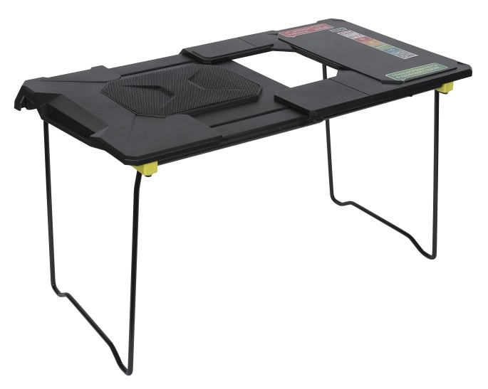 Модель Laptop Cooling IP17TF производства компании STM является, по сути, не совсем подставкой или охлаждающей платформой. IP17TF – полноценный столик со встроенной системой охлаждения для ноутбука. Столик имеет складные ножки, а габариты устройства позволяют помимо ноутбука разместить и пользоваться компьютерной мышью. Платформа оснащена одним 120-мм вентилятором для дополнительного охлаждения ноутбука. Сам же столик является универсальным, ведь он рассчитан для лэптовов с диагональю экрана до 17.3 дюйма.