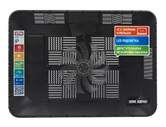Laptop Cooling IP15 — является аналогом STA-IP5 для ноутбуков с диагональю экрана до 17.3 дюймов. Данная модель также оснащается одним 160-мм вентилятором с аналогичной скоростью вращения 750 оборотов в минуту. Как и младшая модель, IP15 имеет несколько USB-портов для подключения периферии или внешних накопителей, но помимо этого, здесь присутствует возможность изменять угол наклона подставки. Все это делает представленную платформу отличным приобретением практически для любого ноутбука.
