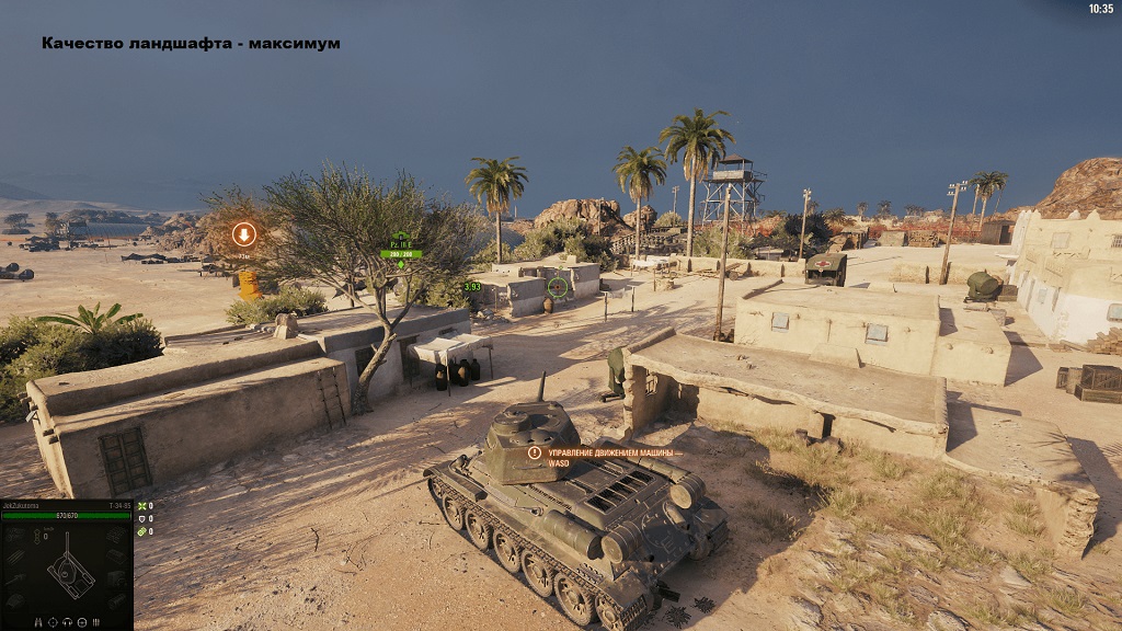 «Качество воды» - параметр, который добавляет отражения объектов от воды, а также добавляет эффекты волн и вибрации воды при движении танка в ней. «Качество ландшафта» - это дальность прорисовки и качества детализации земли. Качество ландшафта достаточно сильно нагружает процессор и видеокарту, а при его отключении или выставлении на низкую настройку, в игре пропадают ландшафтные объекты, которые на самом деле есть, но их будет просто не видно. Этот параметр важный со стороны геймплея, ведь враг может спрятаться как раз за каким-нибудь небольшим холмом и Вы его будете видеть, но выстрелив во вражеский танк, снаряд попросту попадет не в него, а в этот «невидимый холм». Поэтому не рекомендуется снижать этот параметр до самого низкого, лучше выставить хотя бы среднее значение.